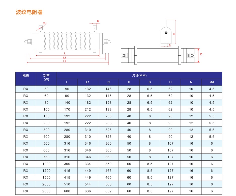 RH型涂料绕线电阻器是一种功率型绕线电阻器,该产品采用波状电阻合金带以侧立形式缠绕在陶瓷骨架上,表面被覆绝缘耐高温涂料,有利于散热,并配有安装支架,电阻器具有功率大,耐过载能力强,安装方便等特点。