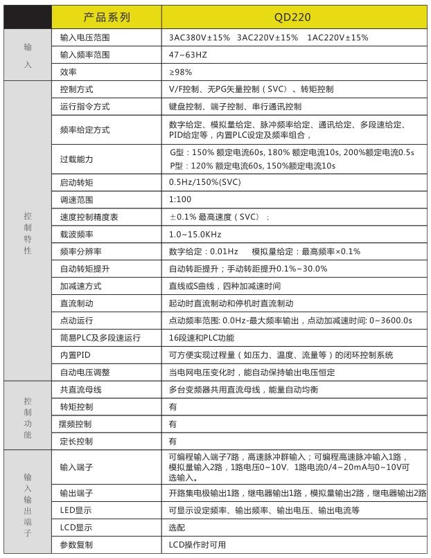 QD220变频器选型手册